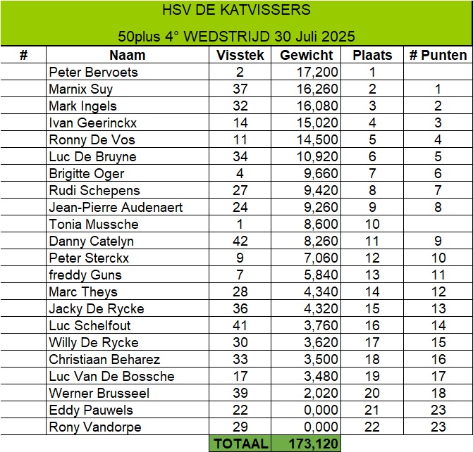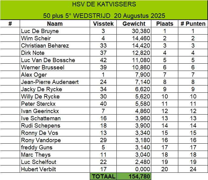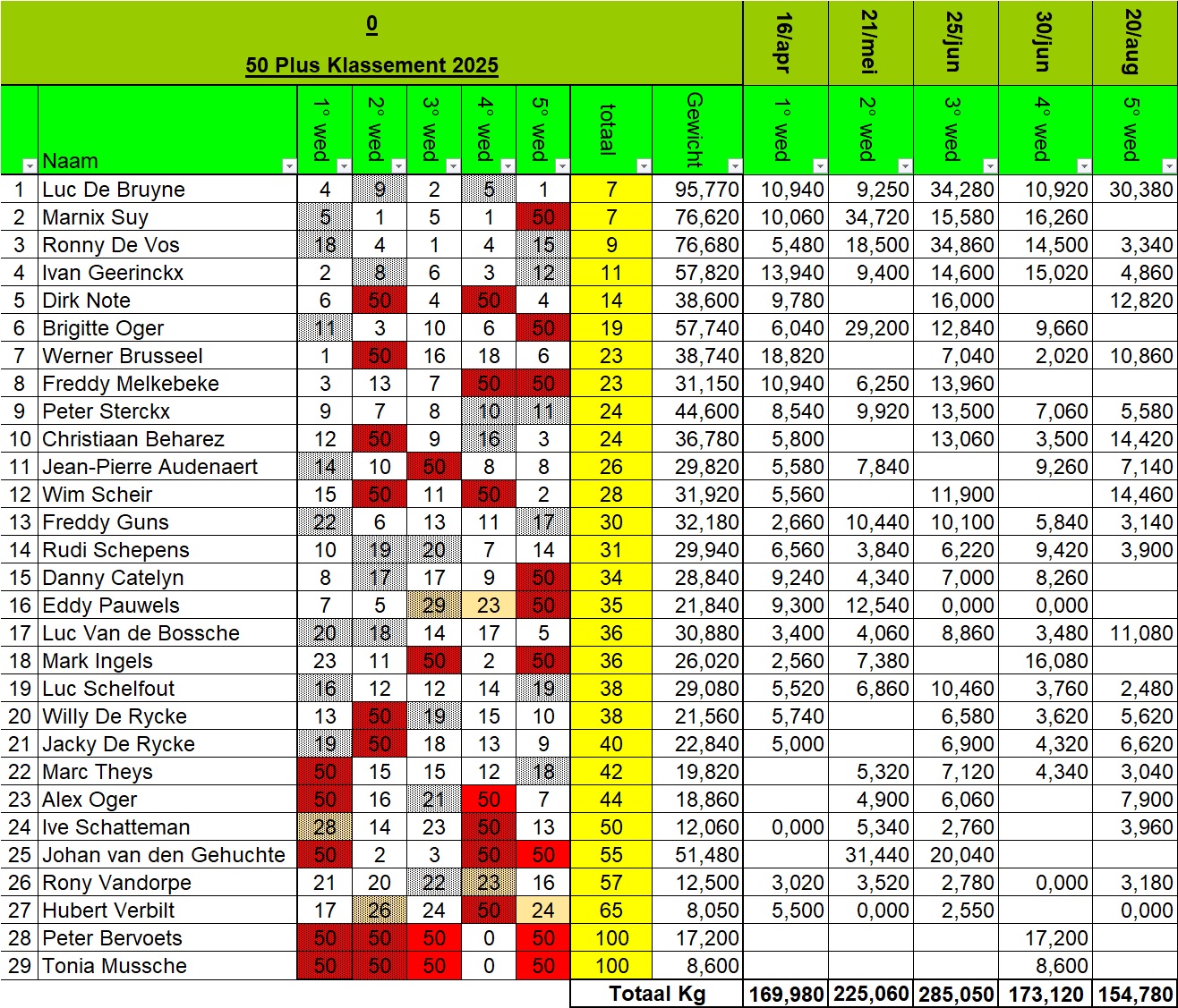 2025 50plus Algemene rangschikking Uitslag wedstrijd 5 Uitslag wedstrijd 4 Uitslag wedstrijd 3 Uitslag wedstrijd 2 Uitslag wedstrijd 1