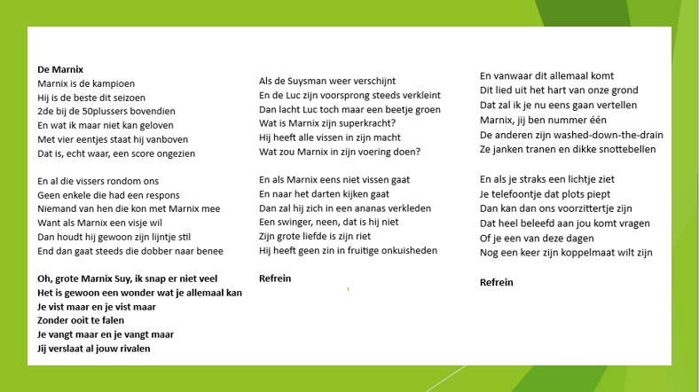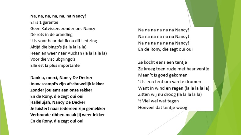 Daarbij werden ook de hoofdprijzen overhandigd en de winnaars in de bloempjes gezet. Ons Kelly heeft dit jaar opnieuw haar beste muzikale talenten gebruikt om een reuze lied voor De Marnix en ons Na, na, na, na, na, na, Nancy te brengen. Dikke merci en proficiat met de performance, Kelly!